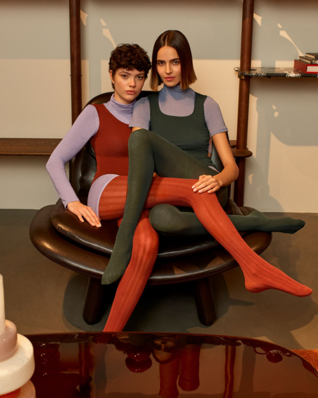 In deze stijl geven donkergroene of mosgroene panty’s precies die klassieke, chique touch. De Forest-tint voegt karakter toe zonder dat de outfit te druk wordt en geeft warmte wanneer je hem combineert met aardetinten.